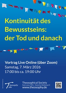 Sie sind herzlich eingeladen, mit uns über diese Fragen nachzudenken! Melden Sie sich rechtzeitig per E-Mail an: info@theosophy.de. Wir senden Ihnen gern kurz vor dem Vortrag einen Teilnahmelink zu!